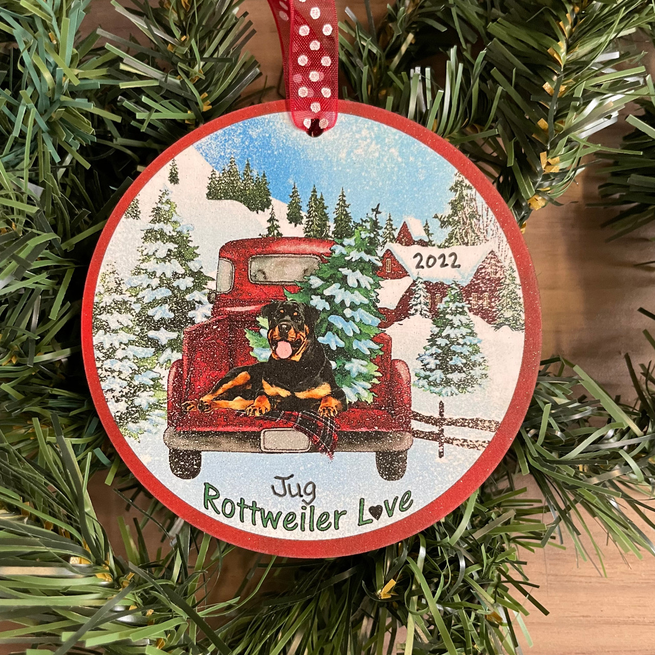 Click the button below to add the Rottweiler Red Truck Personalized Christmas Ornament to your wish list.