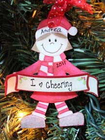 Cheering Elf red, is made of 1/8 plywood and measures d 3 3/4" tall by 3" wide. We will personalize it with the name and the year as per your instructions!!