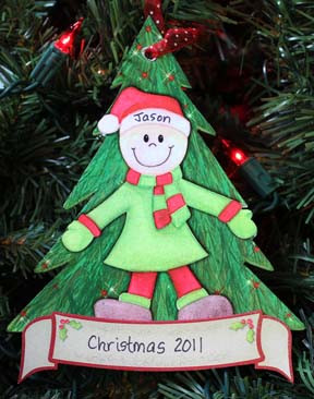 Loading... Please wait...This Elf Ornament includes 1 elf which can be personalized on the hat. The banner can be personalized also to your specifications. We have added the date on the ends of the banner in our sample, please specify that also. The ornament is made of 1/8 inch wood and measures 6" x 6".