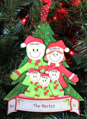 Loading... Please wait...This Elf Ornament includes 2 large elves and 3 small ones, each can be personalized on their hat. The banner can be personalized also to your specifications. We have added the date on the ends of the banner in our sample, please specify that also. The ornament is made of 1/8 inch wood and measures 6" x 6".